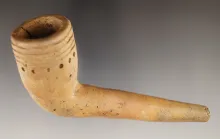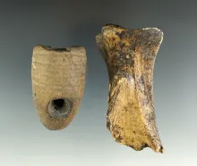 Pair of pipe sections found in New York including a salvaged ring bowl Iroquois clay pipe and a uniq