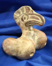 3 3/4" wide Pre Columbian Avian Form Dual Chamber Whistle from west Mexico circa 200BC-AD350. MEXICO 150.00