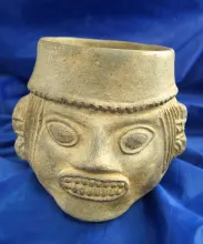 5" tall by 5 1/2" wide human effigy jar from Peru 300.00