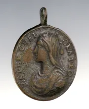 1 11/16" Religious Trade Medal of Mother Mary from the 1700's, Geneva, New York. |