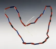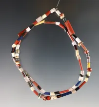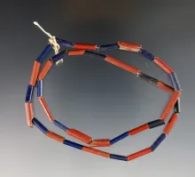 16" Strand of red and blue Tubular Beads recovered at the Dann Site in Lima, Monroe Co., NY |