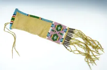 14" x 4 1/2" vintage Beaded Leather Pipe Bag with 10" drops from the early to mid 1900's. |