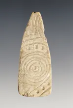 Heavily engraved 2 1/4'' Shell Ornament with punctate design. Fox Field Site in Mason Co., KY |
