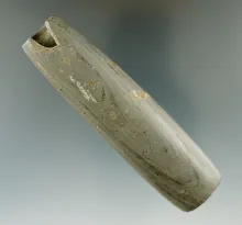 4 3/16" Tube Bannerstone made from banded glacial slate found in Indiana. |