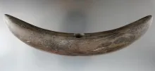6 13/16" Crescent Bannerstone made from deeply patinated banded slate found in Ohio. |