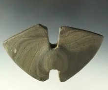 2 9/16" Double Notched Wing Bannerstone with an anciently salvaged wing - Hancock Co., Ohio. |