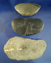 Set of three slate Bannerstone preforms found in Ohio, largest is 5 3/16". |