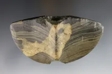 4 3/8" Single Notch Butterfly Bannerstone with "worm tracks" on surface. Noble Co., Indiana. |