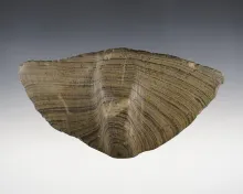 2 3/4" Banded Slate Elongated Ball Bannerstone Preform that is spotted at both ends. Ohio. |