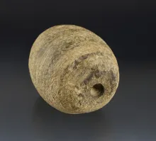2" by 2" Sandstone Bannerstone recovered in Ohio. Drilling started on one end. |