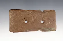 2 7/16" Reel Gorget found in Ashland Co., Ohio. Heavily patinated. Ex. David Root collection, #585S.
