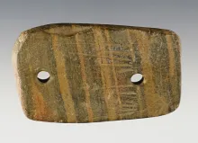 2 3/4" Engraved Gorget made from an exotic-colored Banded Slate. Portsmouth, Ohio. |