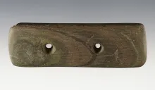 3 3/4" long Three Hole Gorget made from Hardstone. Found in Delaware Co., Indiana. |
