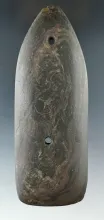 5" uniquely styled Bi-Concave Gorget found in Crawford Co. Ohio -Green banded Glacial Slate. |
