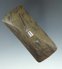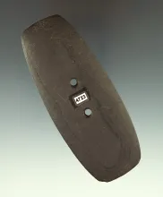 Uniquely styled 3 3/8" Humped Gorget found in Ohio. Anciently salvaged with over 40 tallies. |