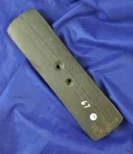 5 7/8" black slate Glacial Kame Gorget found in southern Indiana - heavy mineral deposits on surface