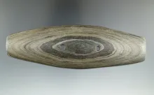 5 7/16" Hopewell Gorget made from Banded Slate found in Noble Co., Indiana. Ex. Smith, Stiemlie. |