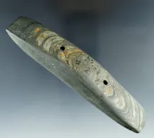 5 1/2" restored Gorget made from brown and black Banded Slate, found in Richland Co., Ohio. OHIO 80.00
