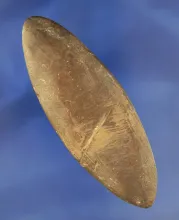 Very unique 3 1/2" brown slate Undrilled Elliptical Gorget that is very well patinated. |