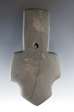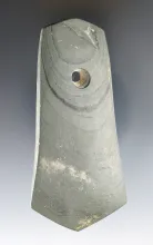 3 9/16" uniquely styled shovel pendant made of banded slate. Found in Knox Co., Ohio. |