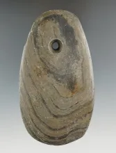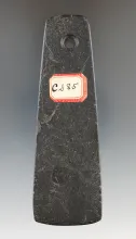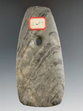 5 3/4" Hopewell Trapezoidal Pendant made from green and black Banded Slate, found in Cass Co., Michi