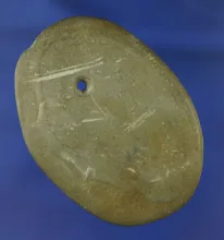 Rare! 4 1/16" beautifully patinated Banjo Pendant that is drilled for suspension - Columbia River. -