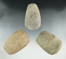 Set of three stone tools including two Celts and a grooved Hammerstone.Hillsdale Co., Michigan. |