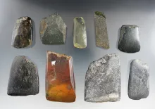 Group of nine assorted stone and jadeite tools found in this Pacific Northwest, 60.00