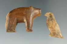 Pair of Inuit carved ivory figures including a 1 3/4" bear and a 1 1/8" tall penguin/bird. |