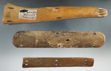 Three sections of Inuit bone armor found in Alaska, largest is 7 3/8". |