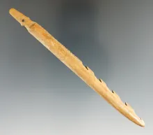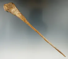 7 3/8" long and thin heavily patinated bone awl in excellent condition. |