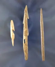 Set of three bone projectile points found in Alaska, largest is 3". |