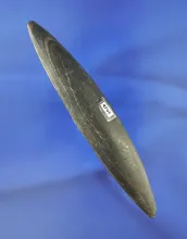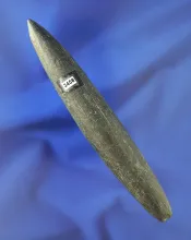 Heavily patinated 4 1/8" Elliptical Bar Atlatl weight found in Ohio. Made from slate. |
