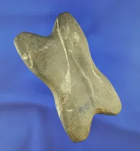 Uniquely styled 3 1/8" center grooved Atlatl weight found in Franklin Co., Ohio. |