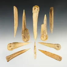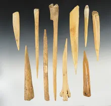 Group of 10 Assorted Bone Awls found in New Mexico, largest is 4". |