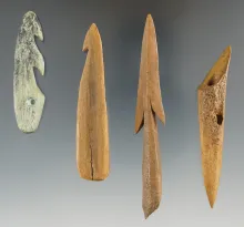 Set of four bone harpoon tips found in Alaska, largest is 3 13/16". | ALASKA | 100.00 | |