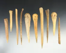 Group of 10 assorted bone awls found in New Mexico, a couple have damage. Largest is 6". |