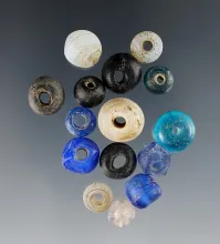 Set of 15 Beads recovered at the White Springs Site, Geneva, New York. The largest is 1/2". |
