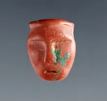 Rare 5/8" Catlinite Maskette Bead that is drilled for suspension. New York. Circa 1710-1745. |