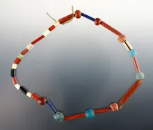 15" Strand of red and blue Straw Beads found at the Dann Site, Lima, Monroe Co., New York. |
