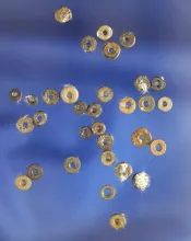 Nicely patinated 5/8" diameter drilled fluorite bead found at the Crib Mound in Spencer County India