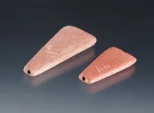 Pair of nicely made Catlinite Trapezoidal Beads found at the White Springs Site, Geneva, New York. |