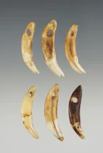 Set of 6 Drilled Canine Teeth that are well patinated. Ex. Raymond Vietzen. The largest is 1 3/8". | 100.00 | ||