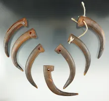 Nice Set! Group of seven drilled bear claw's from a necklace circa late 1800s. Largest is 3 1/2". 375.00