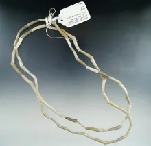 Very nice bone bead necklace with two elk teeth recovered from Union Co., Illinois. Ex. Richard Shiv