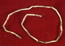 Group of assorted copper, shell and trade beads found in 1961 near Klamath, Oregon. |