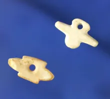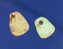 Nice pair of drilled shell pendants found in Arizona. Both are around 5/8" long. |
