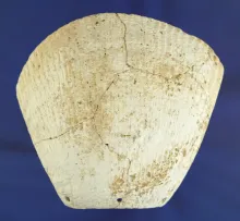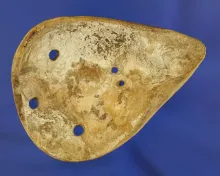 2 7/8" Shell Mask at found at the Feurts site, Scioto Co., Ohio. Five perforations. Jackson COA. |