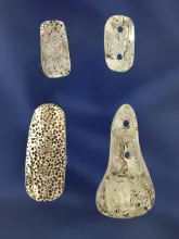 Set of four attractive abalone shell ornaments found in California, largest is 1 3/8". |