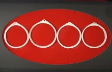 Nice framed set of four shell bracelets or ornaments found in New Mexico. Largest is 3" long. |
